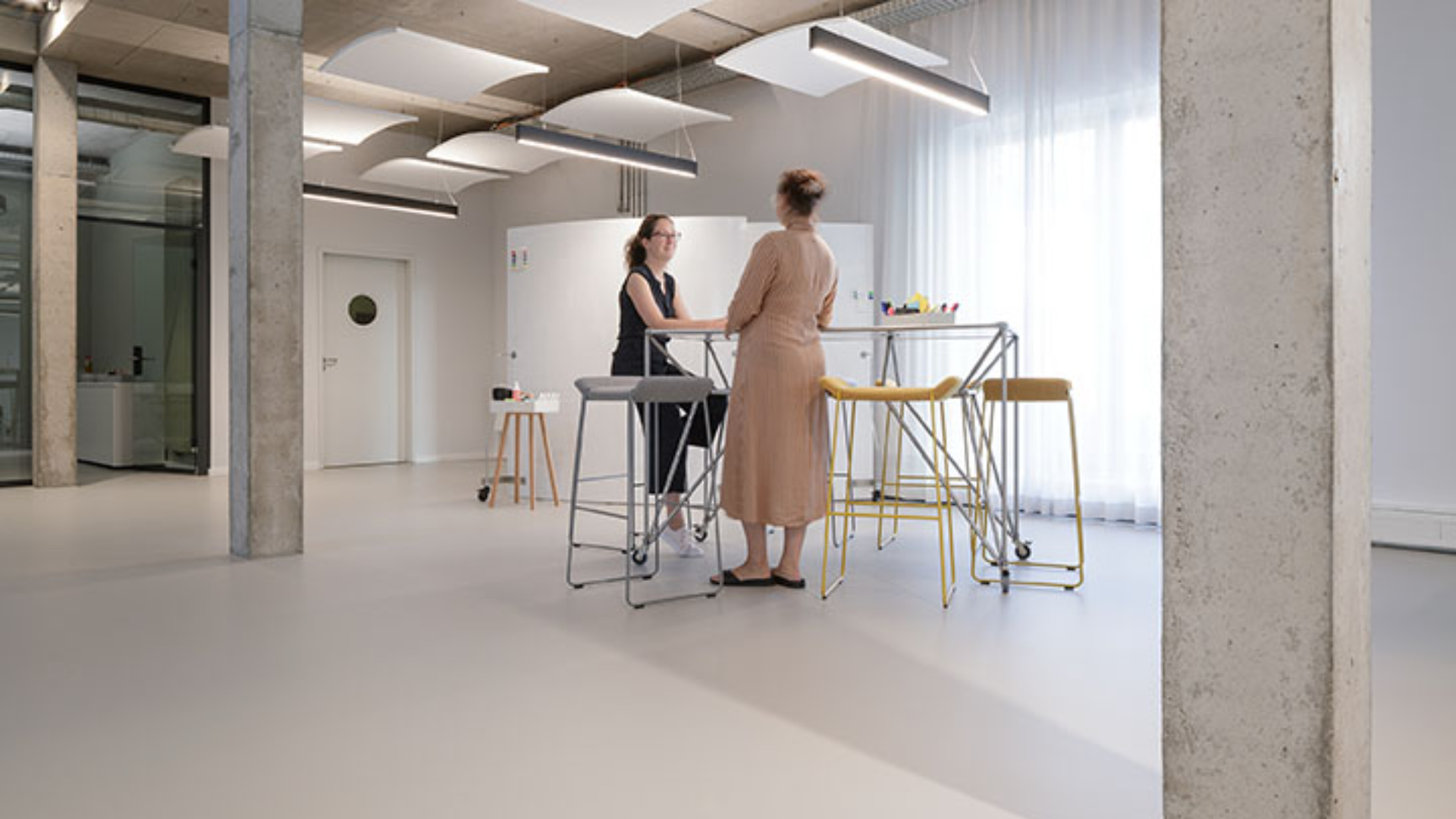 Das Ergebnis: Ein inspirierender Raum, der Kreativität und Zusammenarbeit fördert – und zeigt, wie Architektur, Design und innovative Materialien perfekt zusammenspielen.