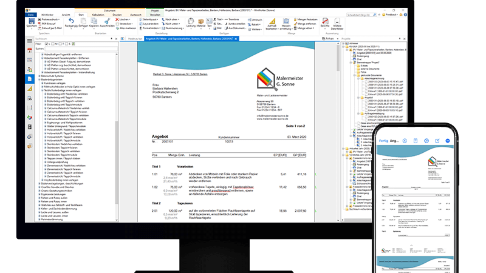 WinWorker ist eine umfassende Malersoftware, die Maler- und Lackiererbetrieben hilft, ihre Projekte effizient zu verwalten. Von Angeboten über Aufmaße bis zur Rechnungsstellung unterstützt sie den gesamten Auftragsprozess. Mit präziser Kalkulation und einfacher Kundenadressverwaltung spart sie Zeit.