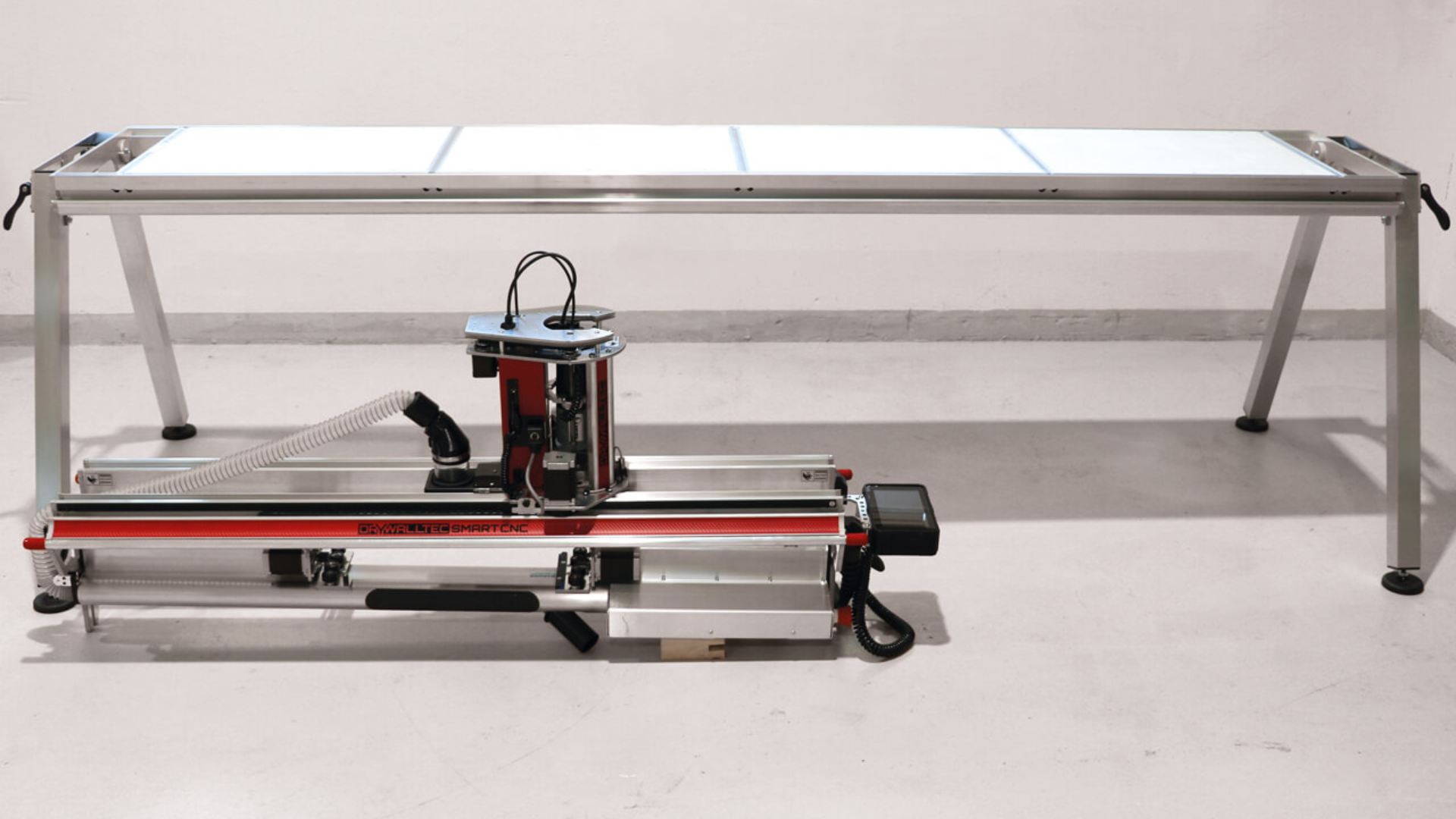 Smart CNC: Die Smart CNC Fräsmaschine ist eine weitere Innovation von Drywalltec, die durch ihre Benutzerfreundlichkeit und hohe mobilität besticht. Die Smart CNC ist für den mobilen Einsatz gemacht, damit lassen sich Sanitärausschnitte oder Rundungen vor Ort schnell und einfach erzeugen. Mit einer intelligenten CNC-Steuerung ausgestattet, bietet die Smart CNC eine Vielzahl von Anwendungsmöglichkeiten im Trockenbau und ermöglicht es den Anwendern, komplexe Designs und Schnitte mit Leichtigkeit umzusetzen.