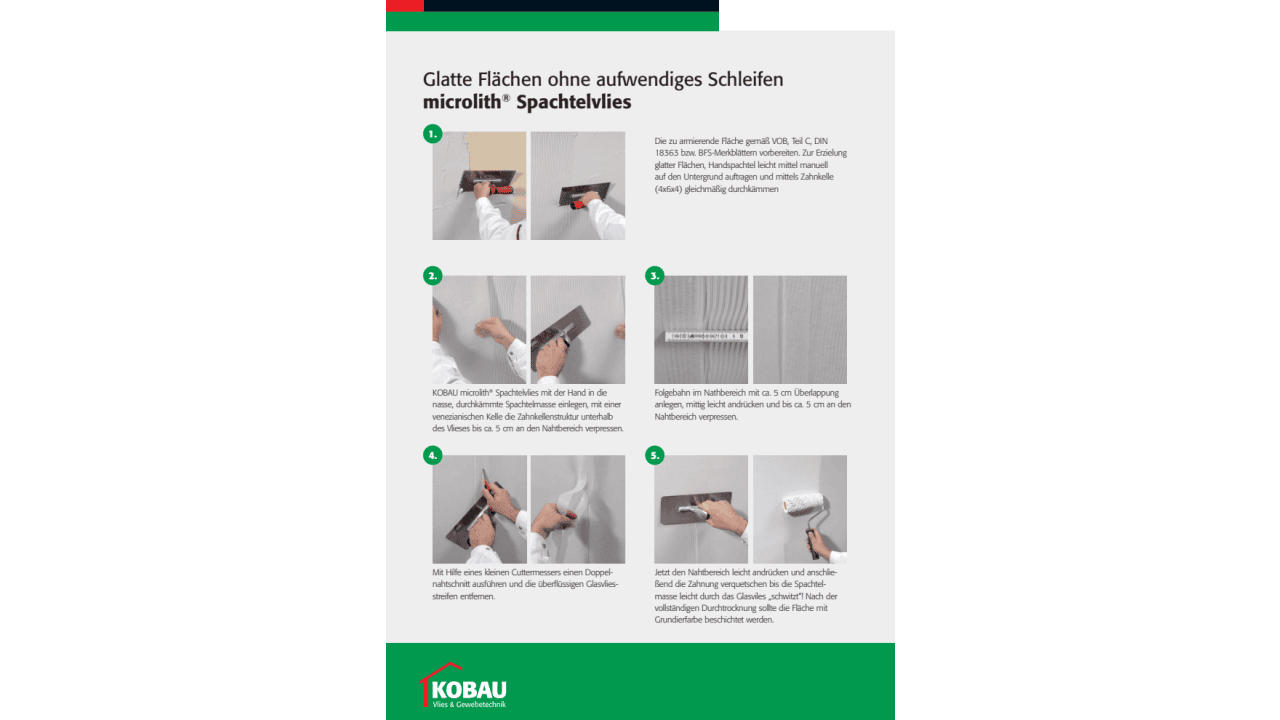 “Reinforcement instead of multiple levelling” with KOBAU microlith Spachtelvlies